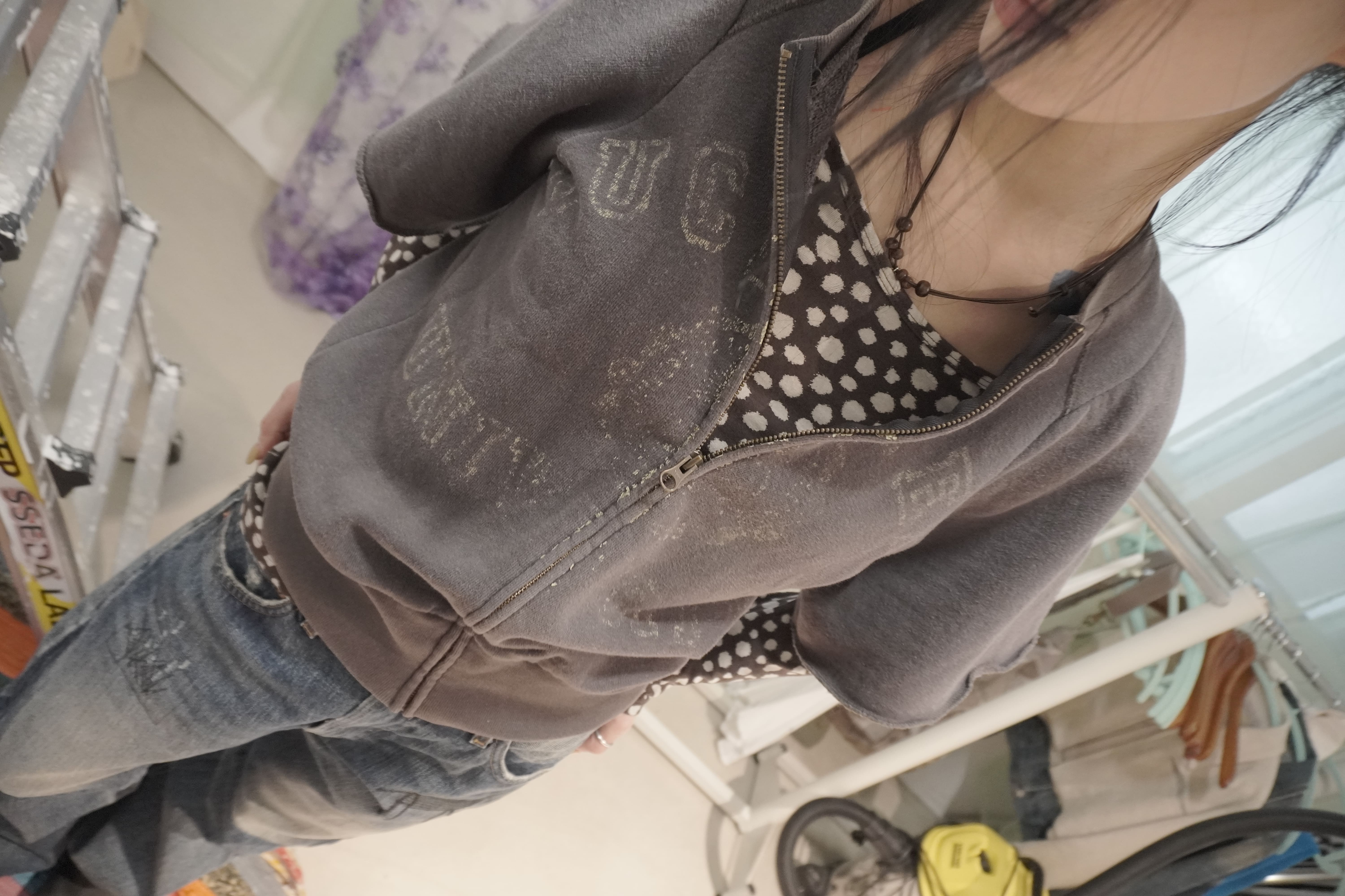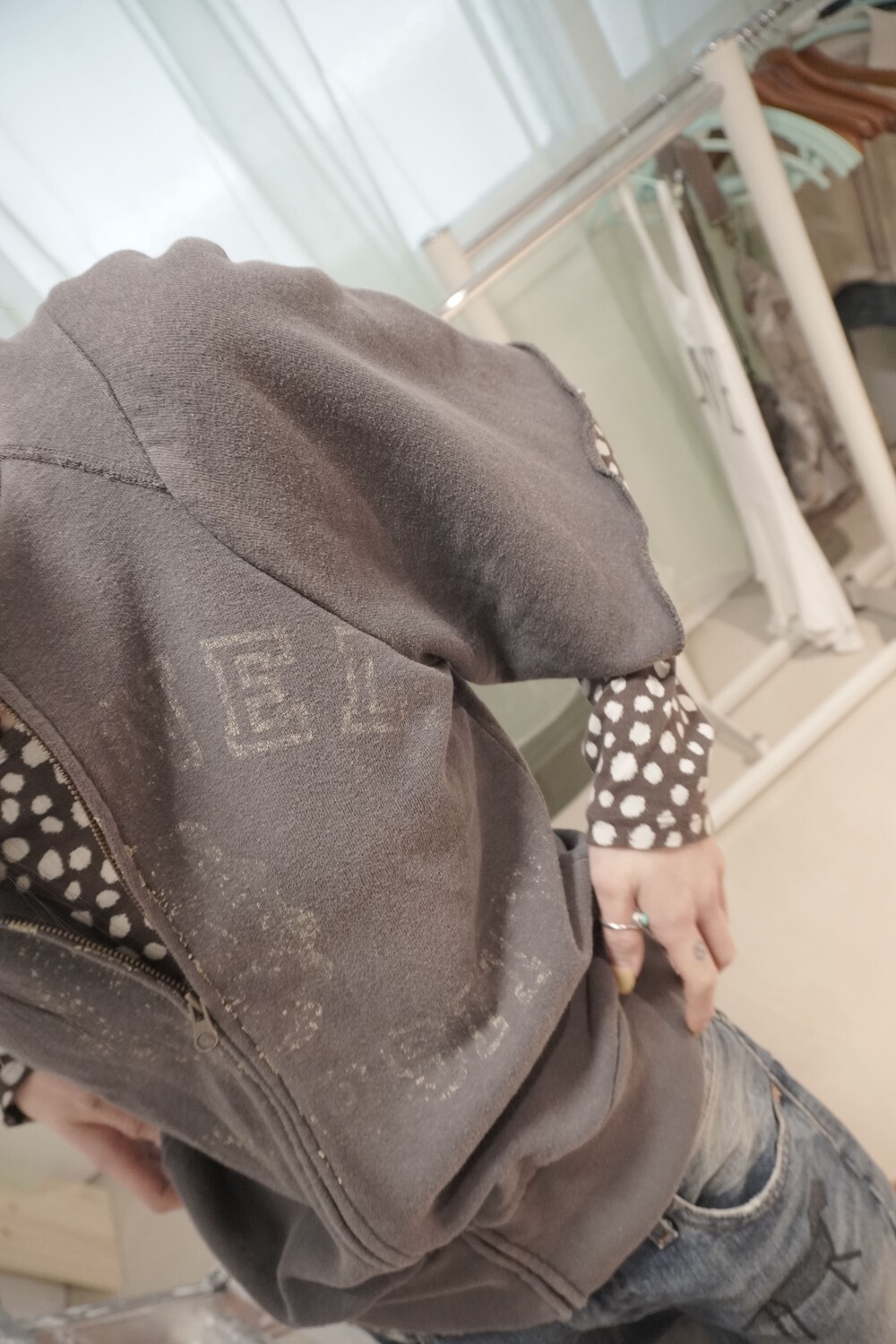 [Vintage] Archival Faded Grey Short-Sleeve Zip-up