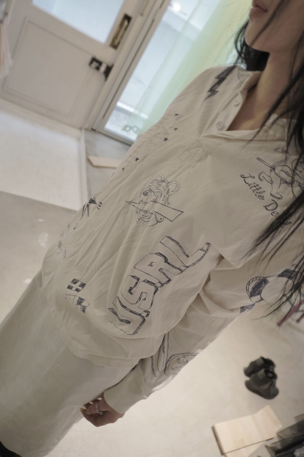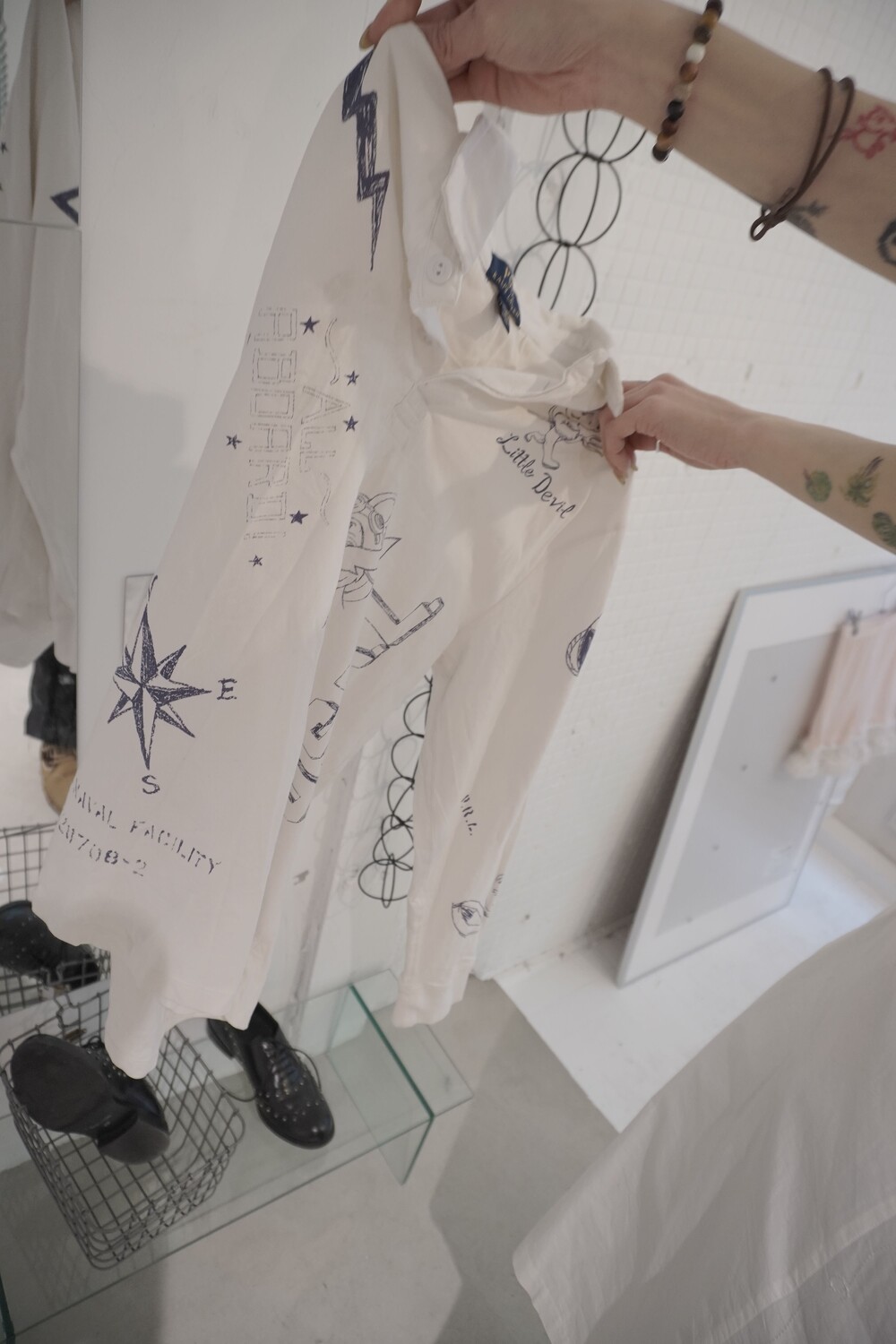 폴로 랄프 로렌의 아카이브 그래픽이 돋보이는 헤비 코튼 럭비 셔츠입니다. 깨끗한 화이트 바디를 베이스로 나침반, 별 모티프, 빈티지한 폰트의 레터링이 곳곳에 배치되어 밀리터리와 마린 무드가 믹스된 유니크한 디자인을 보여줍니다. 탄탄한 럭비 셔츠 특유의 화이트 칼라(Collar)와 전면의 히든 버튼 디테일이 클래식함을 더하며, 넉넉한 오버사이즈 실루엣으로 단독 착용 시 멋스러운 제품입니다.