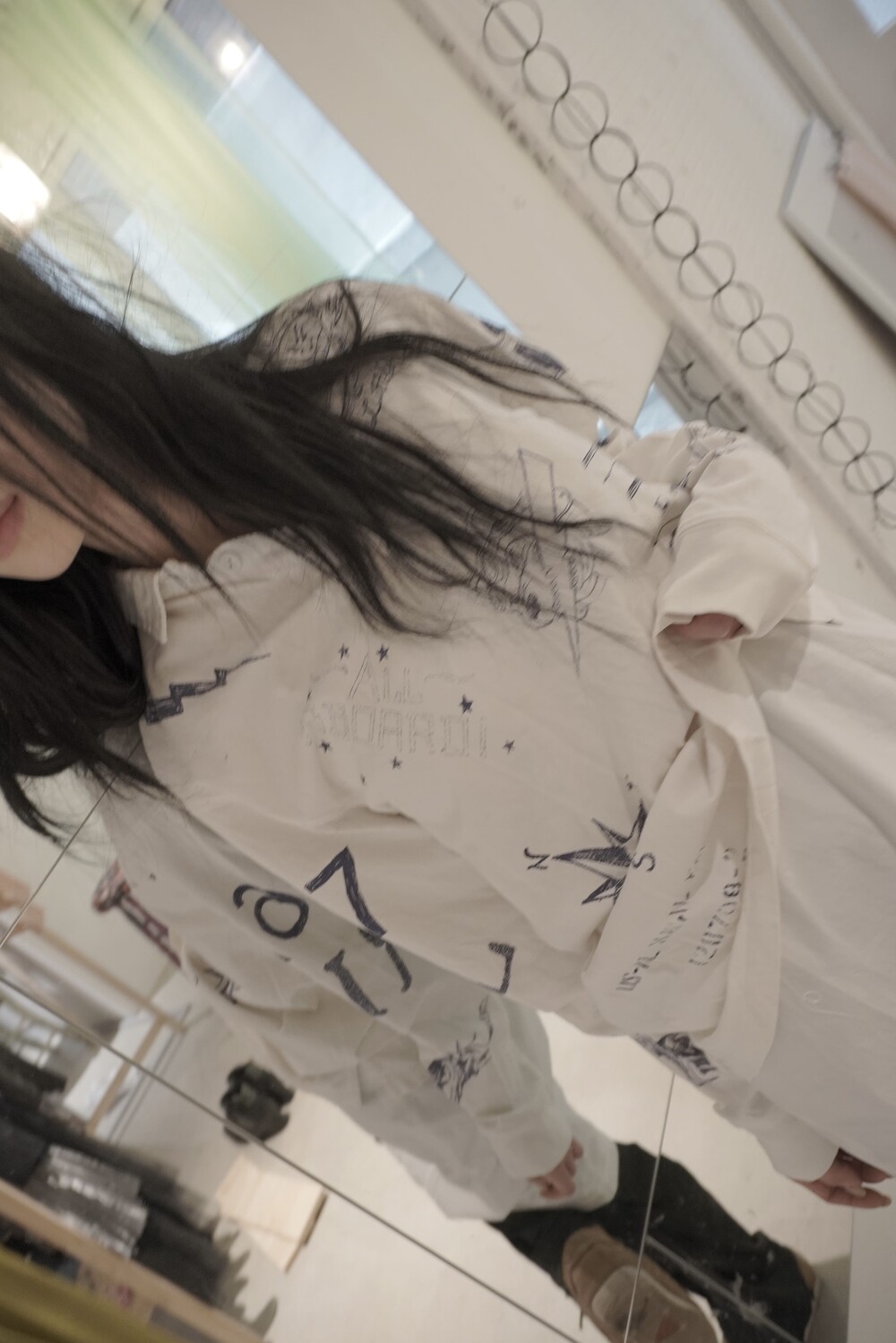 - 빳빳하게 형태를 유지하는 화이트 트윌 칼라 디테일