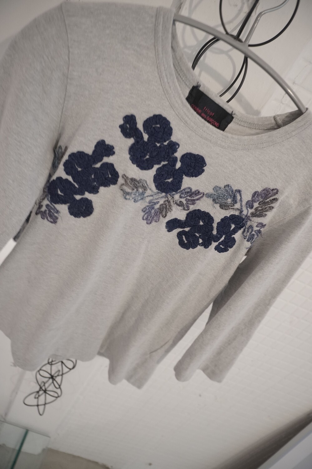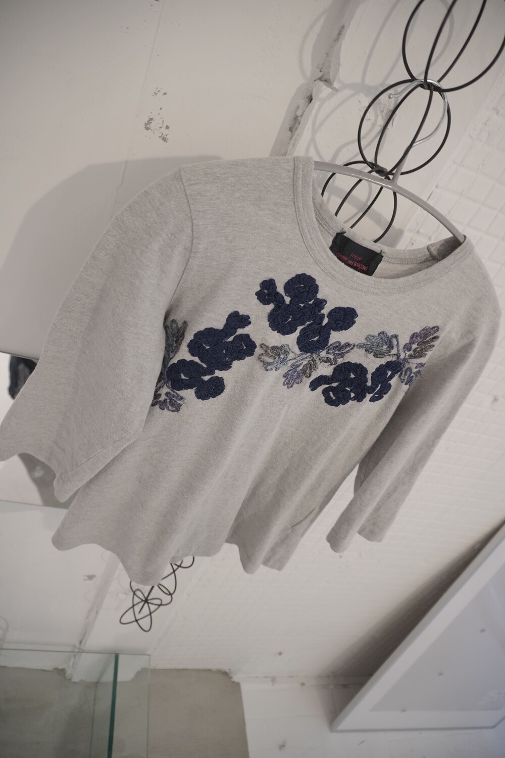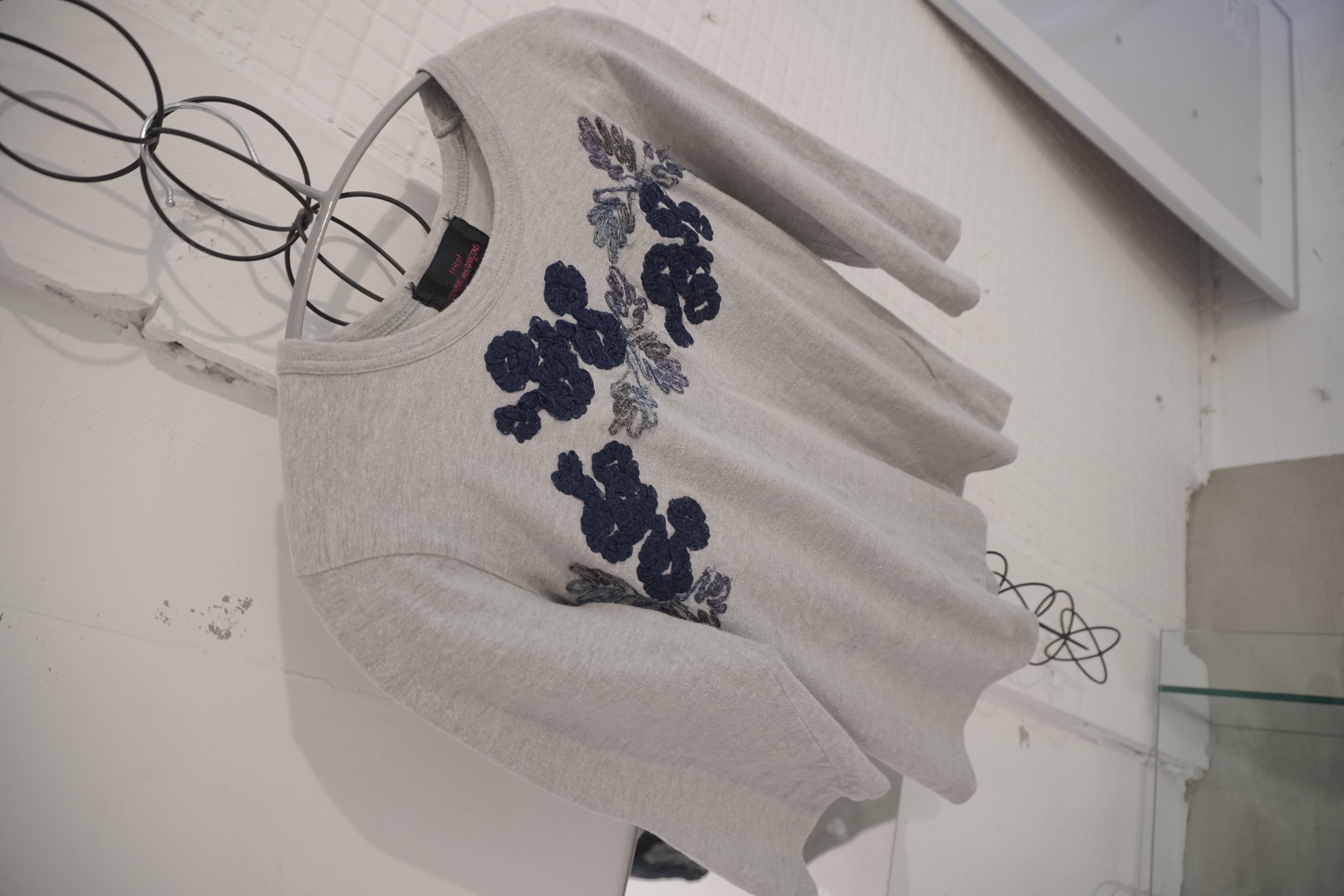 트리콧 꼼데가르송의 아카이브 감성이 돋보이는 플로럴 자수 슬리브 티셔츠입니다.