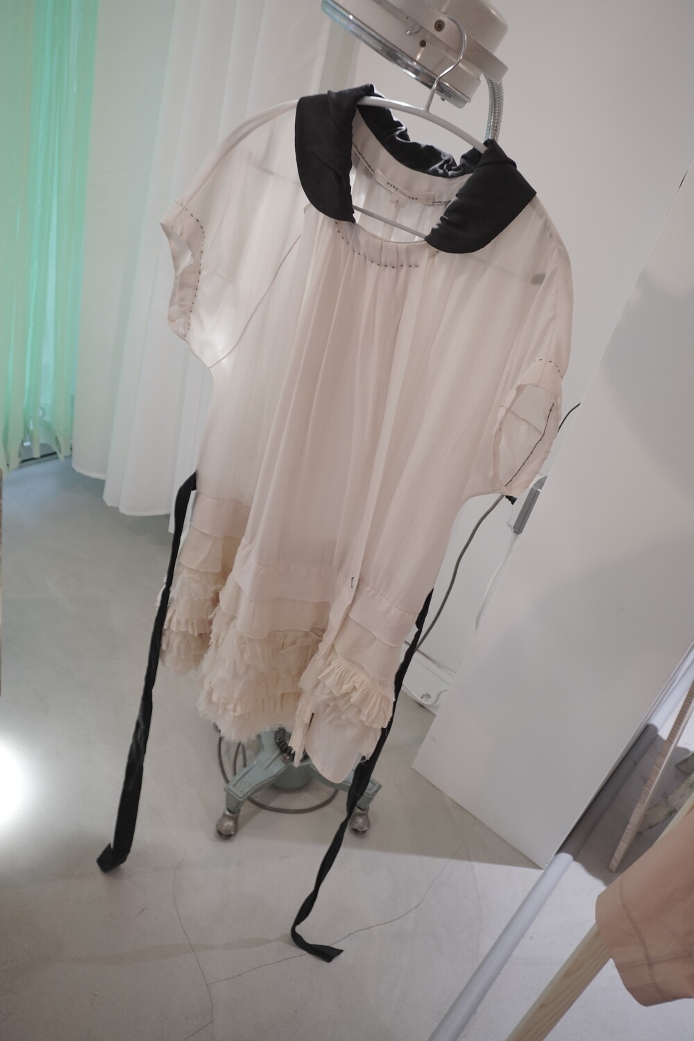 100% 실크 소재 특유의 은은한 광택과 가벼운 텍스처가 특징이며, 시스루 디테일로 다양한 레이어드 연출이 가능한 피스입니다.