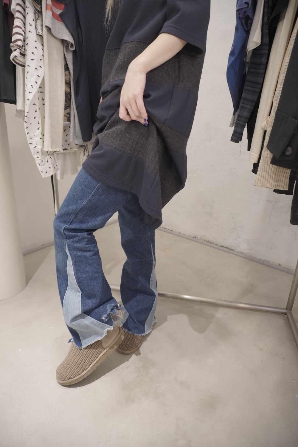 - 허리는 높게 잡아주고 밑단은 자연스럽게 퍼지는 부츠컷