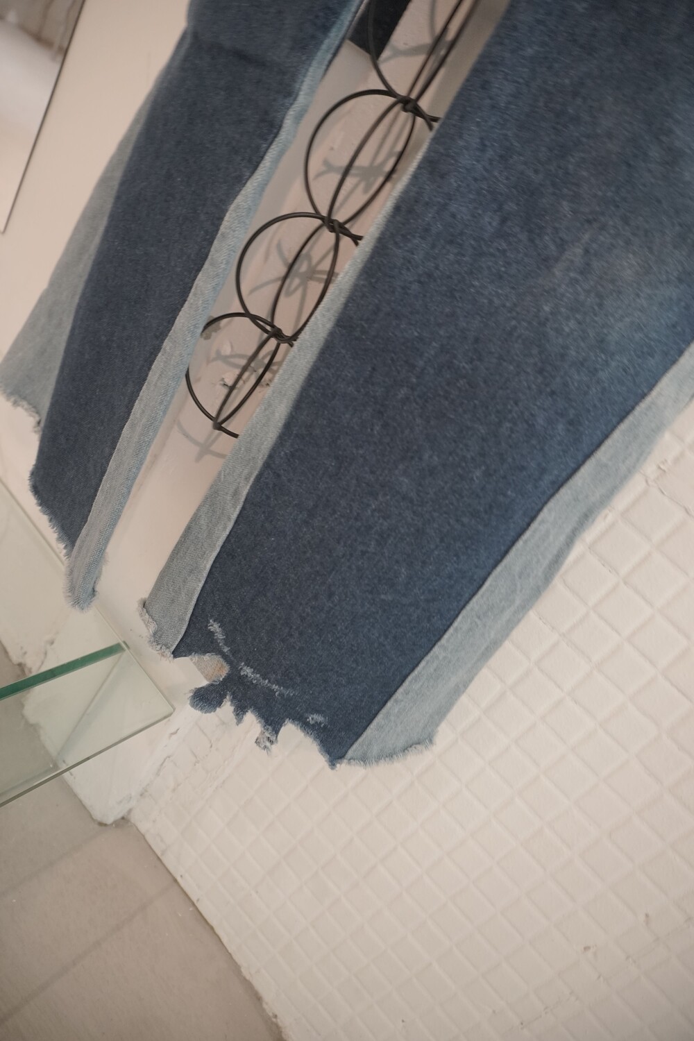 - 빈티지 데님을 해체하고 재조합하여 제작된 유니크한 원오브원 디자인