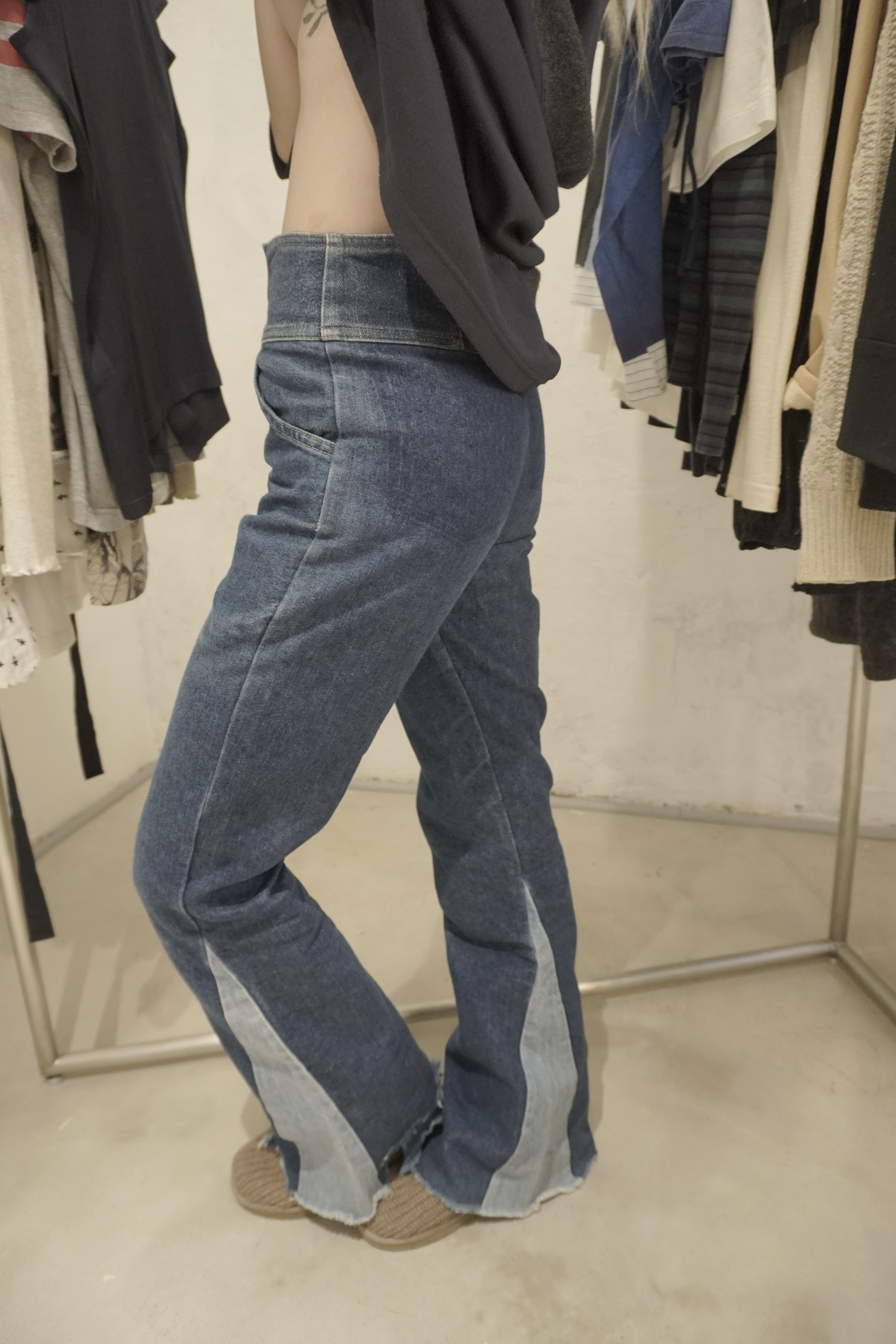 [77circa] Remake High-Waist Panelled Boots-Cut Denim