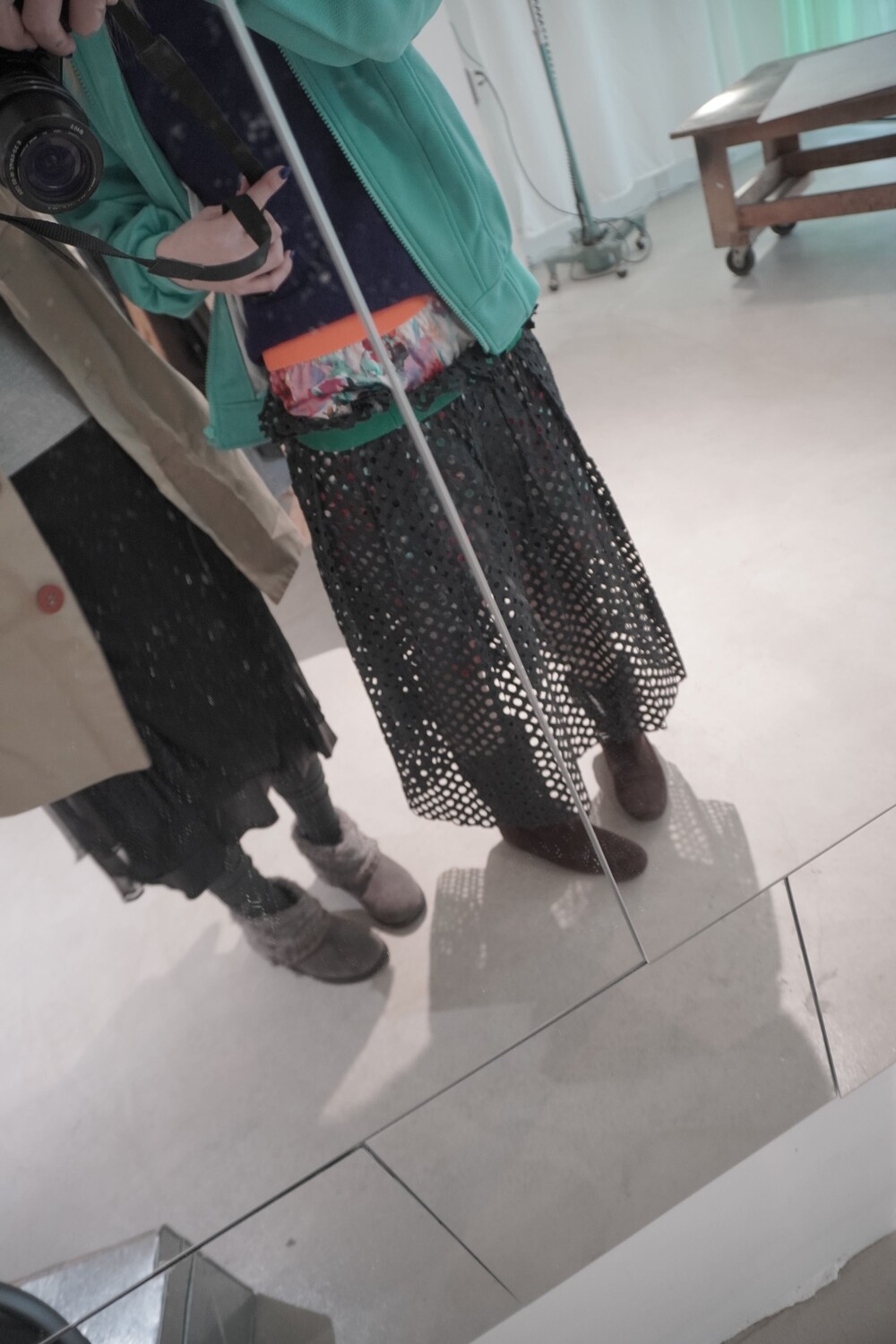 일본의 하이엔드 아카이브 브랜드 Kolor(컬러)의 하이브리드 레이어드 스커트 세트입니다.