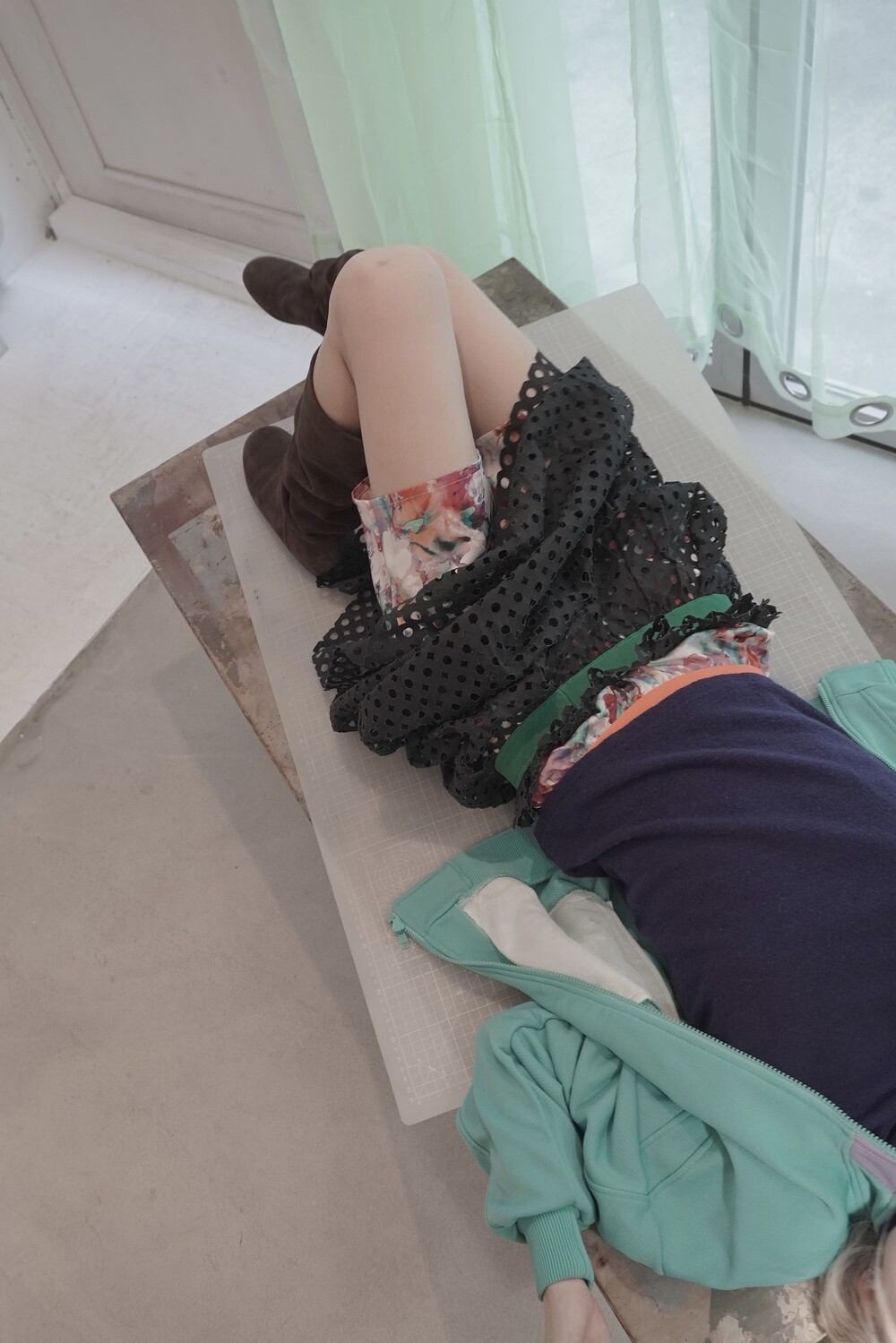 [Kolor] Hybrid Perforated Layered Skirt Set
